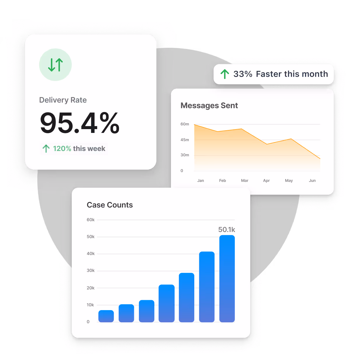 Instantly notify impacted communities via SMS, email, push notifications, and in-app messaging.