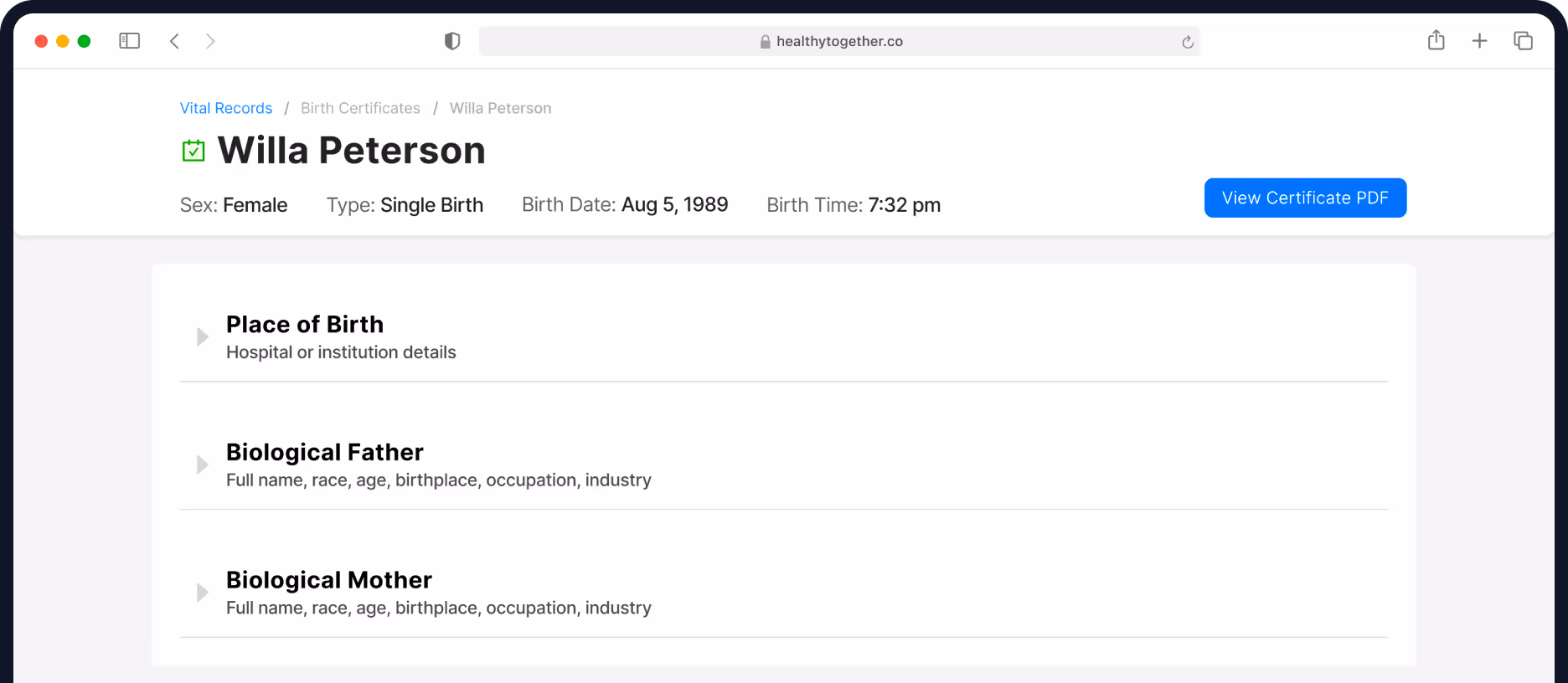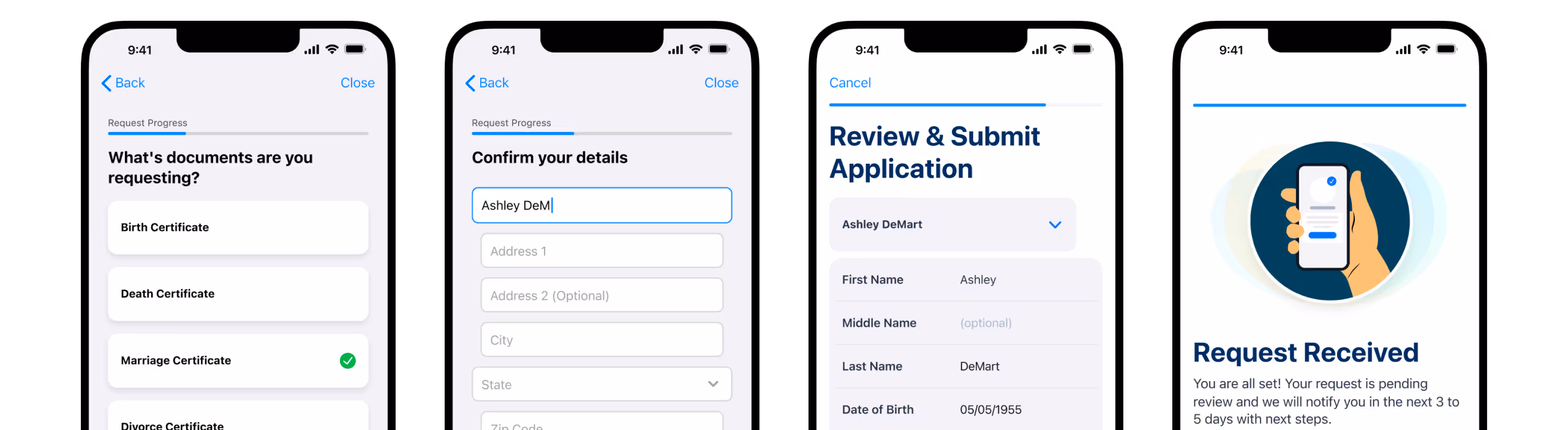 Enable residents to request, manage and view records through a web or mobile application for them and family members.
